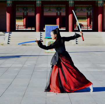 검무는 검과 기(氣)의 흐름이 몸짓과 어우러져 유려하면서도 날카로운 검결을 표현하며, 강인함과 아름다움의 조화를 담고 있습니다. 싸우는 검이 아닌 지켜내는 검, 그리고 **충(忠)·의(義)·벽사(辟邪)**의 상징성을 품은 검의 역설을 보여주는 전통 무예 예술입니다.